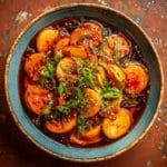 This classic Korean Spicy Rice Cakes recipe features chewy cylindrical rice cakes simmered in a flavorful spicy broth made with gochujang, gochugaru, and a homemade anchovy-kelp broth. Enhanced with onions, cabbage, green onions, and optional boiled eggs, this comforting dish is perfect for those craving authentic Korean street food flavors at home.