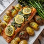 PrintLemon Butter Salmon with Crispy Potatoes and Roasted Broccoli Recipe