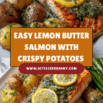 Keywords: lemon butter salmon, roasted potatoes, roasted broccoli, healthy salmon recipe, easy dinner, baked salmon