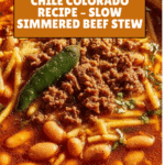 Keywords: Mexican Chile Colorado, beef stew, guajillo chiles, ancho chiles, pasilla chiles, traditional Mexican recipe, slow simmered beef