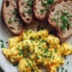 Quick and easy microwave scrambled eggs recipe that delivers fluffy, creamy eggs in just a few minutes. Perfect for a fast breakfast or snack served with toast.