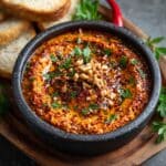 Muhammara is a vibrant Middle Eastern roasted red pepper and walnut dip, rich with smoky, tangy, and slightly sweet flavors. This recipe combines roasted vegetables with aromatic spices and pomegranate molasses to create a creamy, flavorful spread perfect for serving with warm pita bread or as a versatile appetizer.