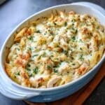 This Mushroom Cauliflower Alfredo Pasta Bake is a creamy, comforting dish that combines tender penne pasta with a rich cauliflower-based Alfredo sauce. Sautéed mushrooms and onions add depth and earthiness, while melted mozzarella and parmesan cheeses create a golden, bubbly topping perfect for a cozy meal.