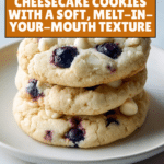 These Perfect Blueberry Cheesecake Cookies combine the rich creaminess of cheesecake with the fresh burst of blueberries in a soft, fluffy cookie. Ideal for summer snacking or a decadent treat, these cookies bake to golden edges with a tender, moist center, studded with juicy blueberries and optional white chocolate or lemon zest for an extra zing.