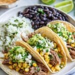 Keywords: Pork Carnitas, Street Tacos, Mexican Tacos, Corn Tortillas, Guacamole, Queso Fresco, Corn Salsa, Easy Mexican Recipe