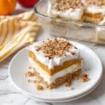 6. Chill and serve: Cover the dish with plastic wrap and refrigerate for at least 4 hours, or overnight, to allow the dessert to set and flavors to meld. Serve chilled, optionally garnished with a sprinkle of pumpkin spice or crushed graham crackers.
