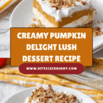 Keywords: Pumpkin dessert, no-bake pumpkin delight, layered pumpkin dessert, fall dessert, holiday dessert, creamy pumpkin treat