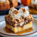 This Pumpkin Dump Cake is a deliciously simple fall dessert featuring a smooth spiced pumpkin layer topped with a buttery yellow cake crust and crunchy nuts. Perfect for a cozy gathering, this easy-to-make cake combines warm cinnamon and nutmeg flavors with the comforting taste of pumpkin, baked to golden perfection in one dish.