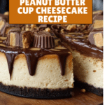 Keywords: Reese’s Peanut Butter Cup Cheesecake, peanut butter cheesecake, chocolate cheesecake, peanut butter dessert, no-bake topping, creamy cheesecake