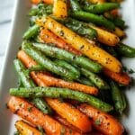 A simple and healthy recipe for roasted carrots and green beans, seasoned with olive oil, garlic powder, salt, and pepper. Roasting brings out the natural sweetness of the vegetables while giving them a tender texture and lightly caramelized finish, perfect as a side dish for any meal.