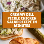 This Savory Dill Pickle Chicken Salad offers a flavorful and creamy twist on traditional chicken salad. Made with shredded cooked chicken, crisp dill pickles, red onion, and a tangy herb-infused dressing of Greek yogurt, mayonnaise, and sweet pickle relish, it’s perfect as a sandwich filling, served with crackers, or enjoyed in lettuce cups. The combination of fresh herbs and pickle flavors makes it a refreshing and versatile dish for lunches or light dinners.