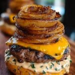 Store leftover patties and caramelized onions separately in airtight containers in the refrigerator for up to 3 days. Reheat gently in a skillet or microwave to preserve moisture. The sauce can be stored in the fridge for up to a week. Assemble burgers fresh to maintain texture and flavor.