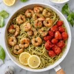 Keywords: shrimp pesto pasta, Italian pasta, quick dinner, easy pasta recipe, seafood pasta, pesto sauce, grape tomatoes, weeknight meal