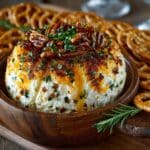 This Skellington Cheese Ball appetizer is a fun and festive treat perfect for Halloween gatherings or any spooky celebration. Creamy, cheesy, and easy to prepare, it’s sure to be a crowd-pleaser with its charming decorated face.
