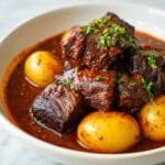 This Slow Cooker Garlic Butter Beef with Potatoes recipe is a comforting, hearty meal perfect for an easy and flavorful dinner. Tender beef chuck roast chunks are slow-cooked with buttery garlic sauce, Italian herbs, and tender baby Yukon Gold potatoes, resulting in melt-in-your-mouth beef infused with rich, savory flavors. With minimal prep and using a slow cooker, this dish offers convenience without sacrificing taste.