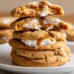 Store the cookies in an airtight container at room temperature for up to 4 days. To keep them soft, you can place a slice of bread in the container, which helps maintain moisture. Reheat briefly in the microwave if desired to enjoy the gooey marshmallow center warm.