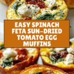 Delicious and protein-packed Spinach Feta and Sun-Dried Tomato Egg Muffins, perfect for a quick breakfast or snack. These savory muffins combine fresh spinach, creamy feta, and tangy sun-dried tomatoes baked to golden perfection for a nutritious and flavorful treat.