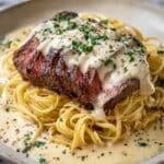 Steak Gorgonzola Alfredo is a rich and satisfying dish that combines tender, seared steak with a creamy, tangy Alfredo sauce. The combination of Gorgonzola cheese and Parmesan adds depth and flavor, making it perfect for a special dinner or indulgent weeknight meal.