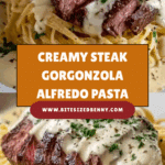 Keywords: Steak Gorgonzola Alfredo, creamy Alfredo pasta, fettuccine recipe, steak pasta, Gorgonzola cheese sauce