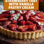Tarte aux Fraises is a classic French strawberry tart featuring a crisp pastry crust, smooth vanilla pastry cream, and fresh, juicy strawberries. This elegant dessert is perfect for warm weather gatherings or an impressive finish to any meal.