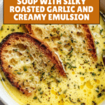 Keywords: garlic soup, French garlic soup, roasted garlic soup, rustic soup, French country soup, comforting soup, savory soup, garlic recipe, easy soup
