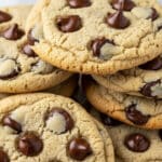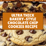 These ultra thick bakery-style chocolate chip cookies are soft, chewy, and perfectly caramelized with a rich buttery flavor. Made with a mix of semisweet and dark chocolate chips, these cookies feature a thick, tall shape achieved by chilling the dough and underbaking slightly, giving them an irresistible bakery-quality texture and appearance.