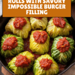 These Vegan Cabbage Rolls are a hearty and comforting plant-based dish perfect for a cozy meal. Filled with savory Impossible Burger, rice, and aromatic spices, then baked in a rich tomato sauce, they satisfy both vegans and non-vegans alike.
