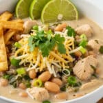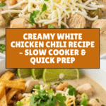Keywords: white chicken chili, slow cooker chili, creamy chicken chili, white bean chili, comfort food, easy chicken chili recipe