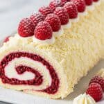 This White Chocolate Raspberry Yule Log is a festive dessert featuring a light, fluffy sponge cake rolled with a creamy white chocolate mascarpone filling and a tangy raspberry sauce. Decorated with whipped cream, fresh raspberries, and white chocolate shavings, it makes an elegant centerpiece for holiday celebrations.