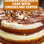 Keywords: White German Chocolate Cake, Cheesecake Center, Coconut Pecan Frosting, Southern Dessert, Holiday Cake, Layer Cake